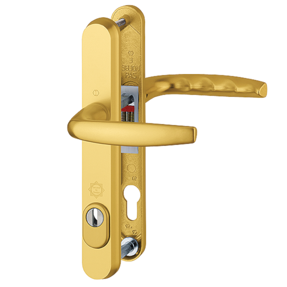 HOPPE Door Furniture PAS24 Altanta 92mm Centres 215mm Screw Centres - Gold