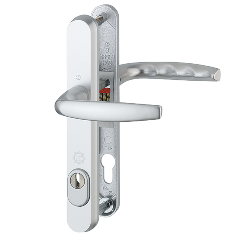 The HOPPE Atlanta Door Furniture features external back plates manufactured from solid aluminium extrusion, with M6 hardened steel screws for added strength. It is PAS24 certified and comes with a sliding cylinder cover which is adjustable to suit various cylinder lengths - this ensures attack resistance, with no need to fit any additional cylinder protection. The handles have the same fixing positions as other standard HOPPE products, making them ideal for retrofit applications.