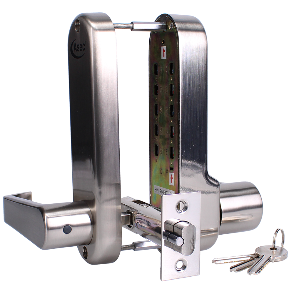 ASEC AS4300 Series Lever Operated Easy Code Change Digital Lock With Key Override & Optional Free Passage AS4309 - Stainless Steel