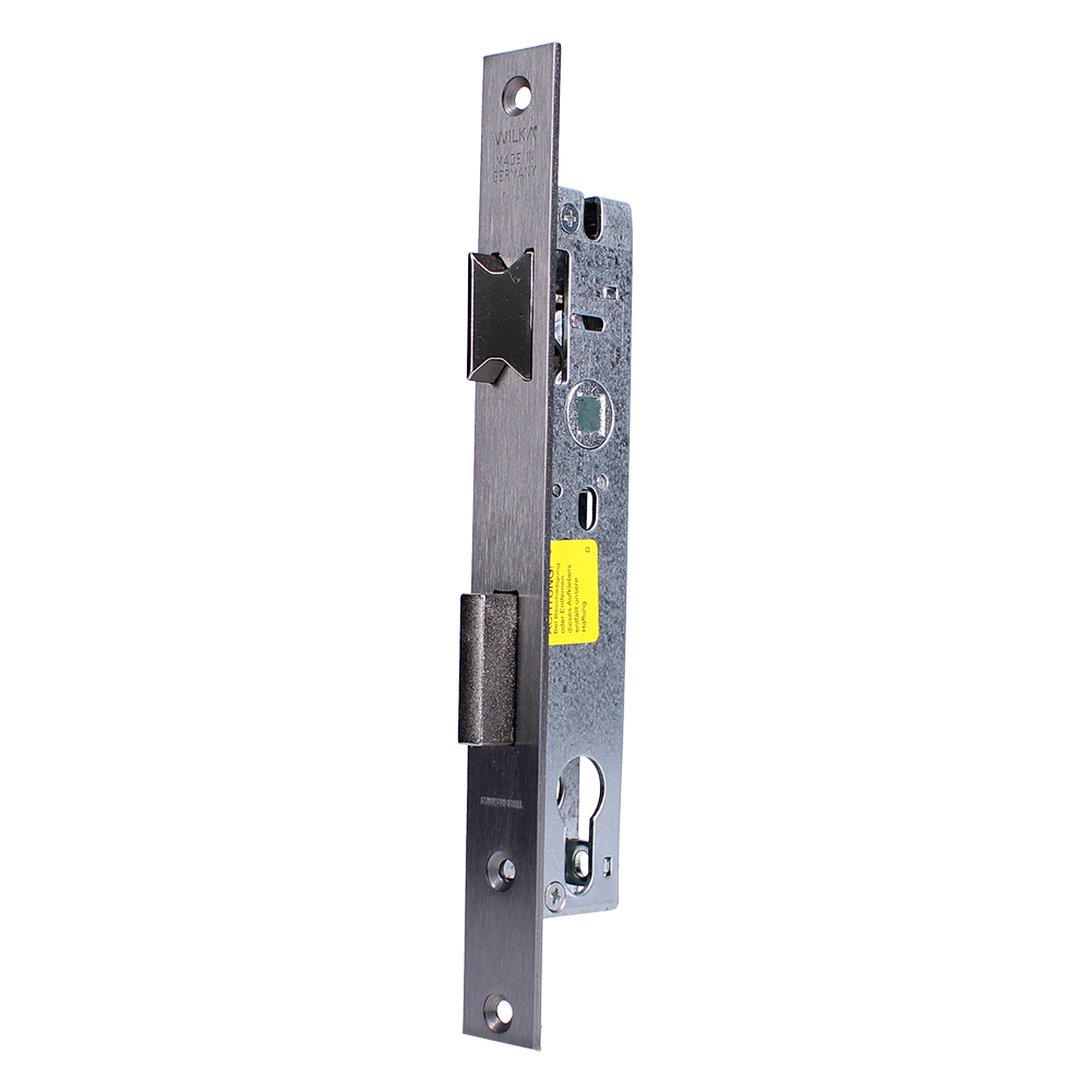The Wilka 1433 is a lever operated latch & deadbolt mortice lock and is suitable for use on metal frame doors. This euro profile lock is EN12209 certified, has a reversible latch, a 20mm backset, 92mm centres, and a 15mm bolt throw. The locks case is closed at the top & bottom and is fully zinc plated.