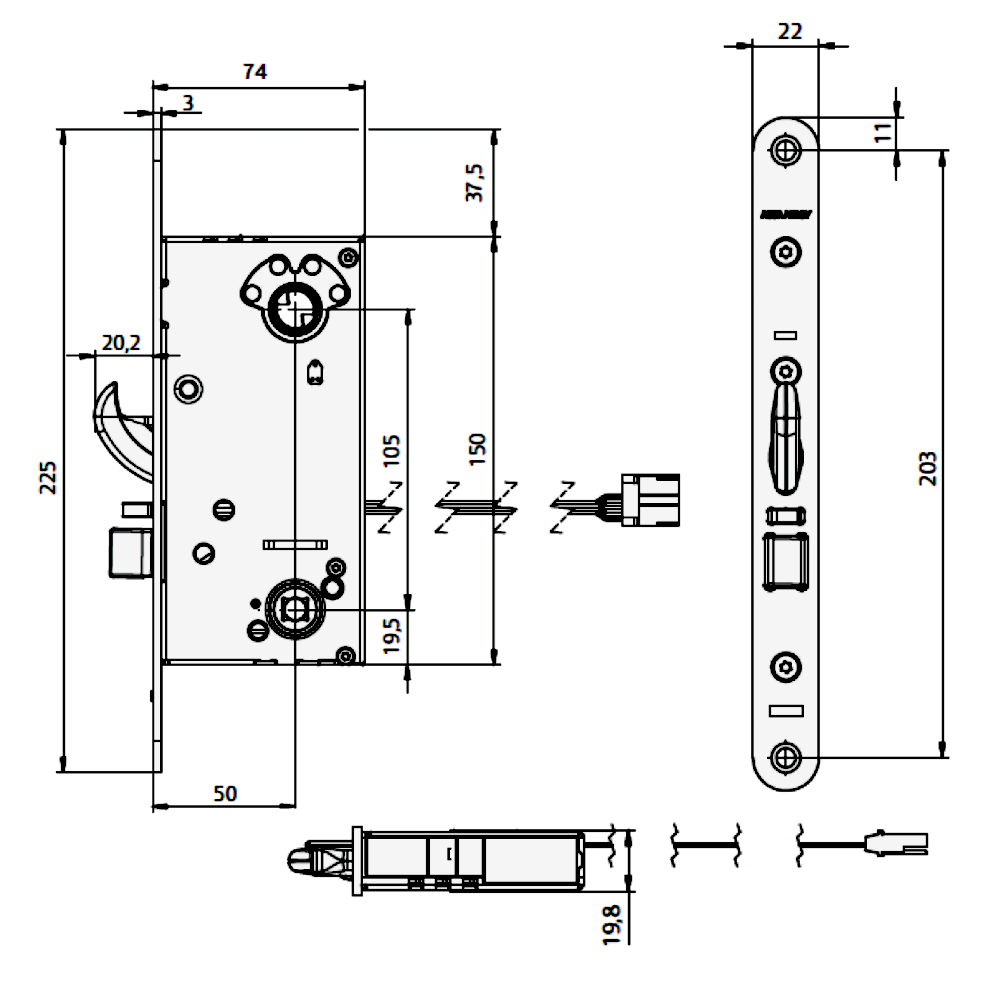 Installation and operation are streamlined with built-in intelligence and connectivity. The 835C-50 integrates with the Hi-O bus system via the I/O Box 350, enabling functions such as status monitoring, re-entry through alarm signals, and simplified setup via DIP switches for programming and configuring behaviours like auto hook control and override opening. Power-efficient, it operates on 12-24 V DC, with modest current draw even during latch or hookbolt operation. Altogether, the 835C-50 presents a secure, flexible, and intelligent locking solution for contemporary access control systems.