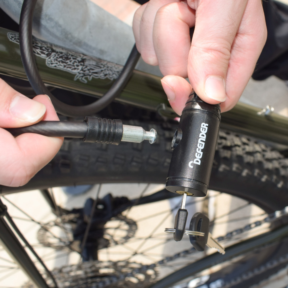 The Defender DF C8/1500 is a lightweight and portable key operated cycle lock. It has a 8mm diameter plastic coated steel cable and comes supplied with two keys.