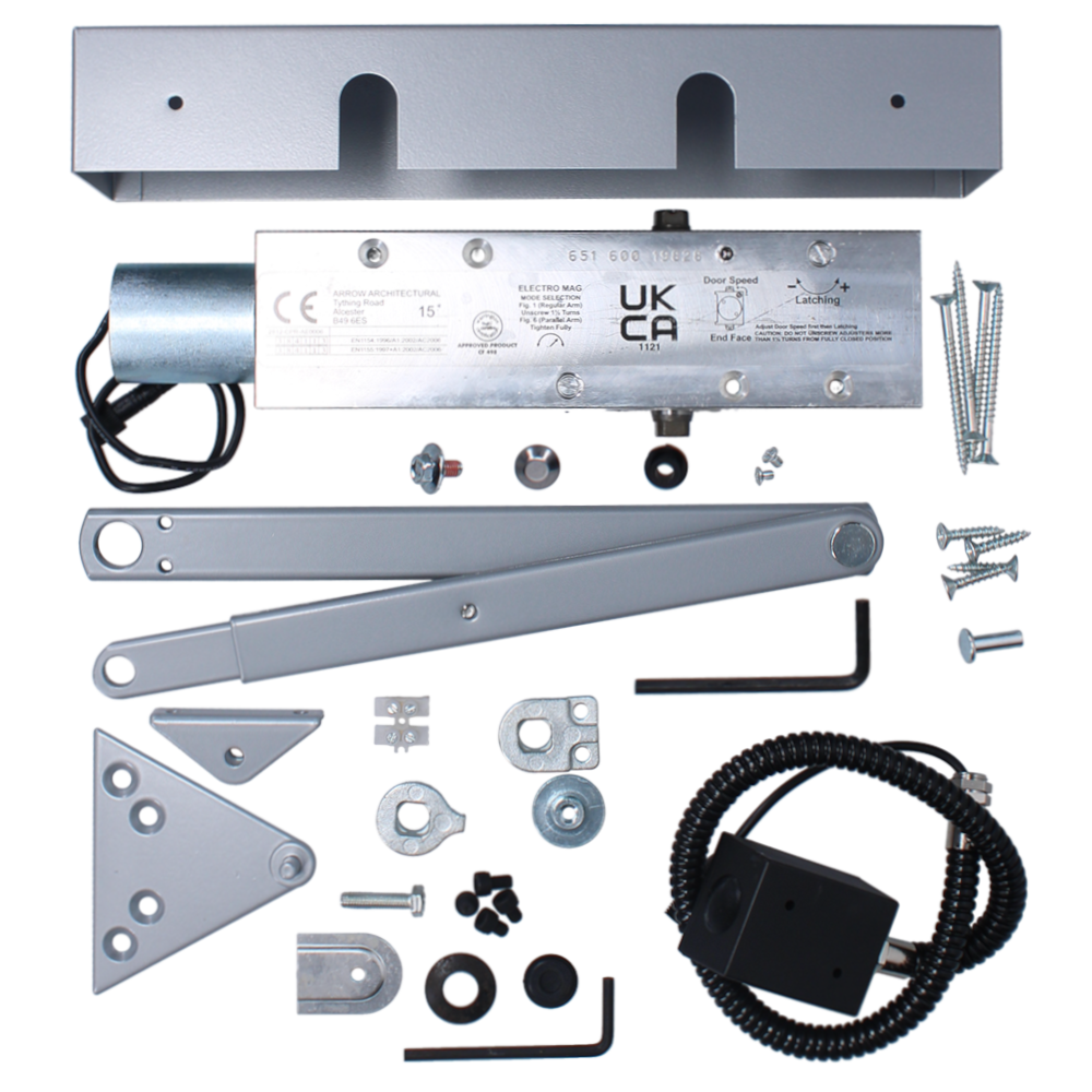 Designed and manufactured in the UK, this 600 door closer series from Arrow represents the ultimate in fire door safety and ease of access. The 600 series can be configured as either hold open or free swing access and will automatically close upon detection of a fire (if correctly connected to the buildings fire detection system).