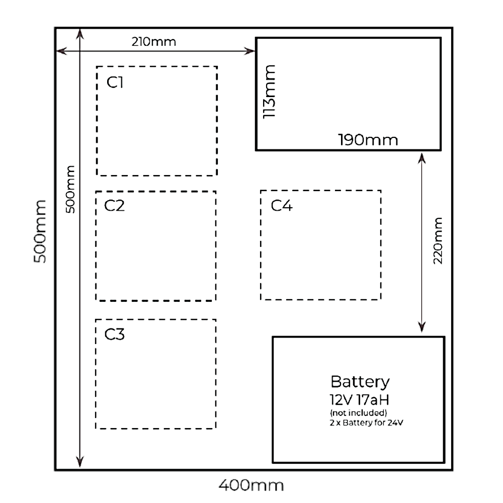 - 500mm (H) x 400mm (W) x 80mm (D)