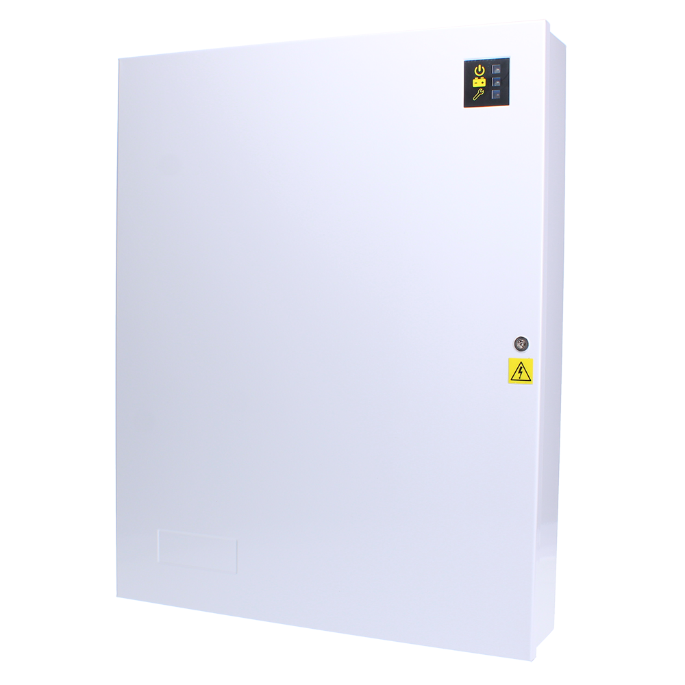 Housed in a mild-steel, white powder-coated enclosure with DIN-rail mounting capability, this PSU offers practical installation features including multiple cable entries, LED indicators for mains, battery and output status, tamper protection and a fused 230 V mains input. It boasts up to 92% energy efficiency, helping to reduce running costs and heat generation, and comes supplied with 16 x magnetic standoffs for universal positioning control boards.