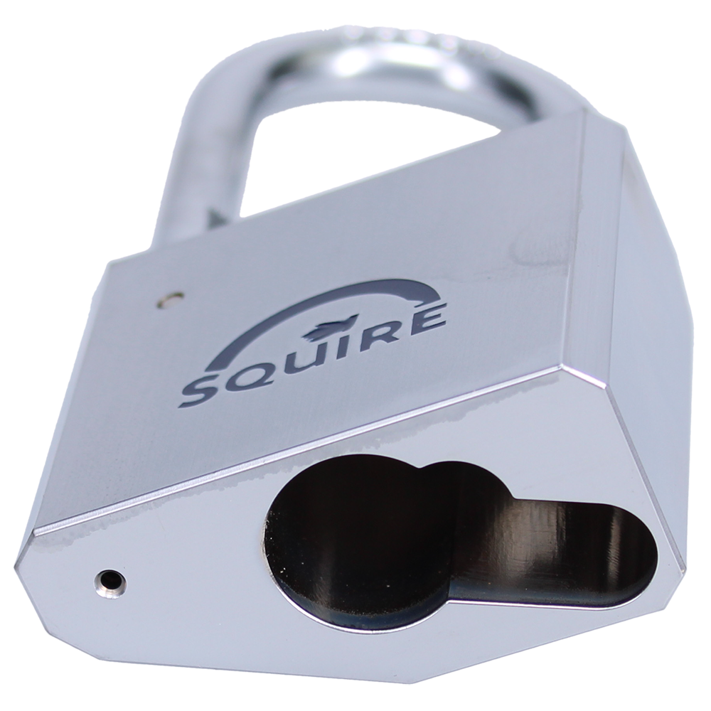 SQUIRE HEB50 Open Shackle Padlock Body To Accept 40mm (30 10) Half Euro Cylinder Chrome Plated Brass Body
