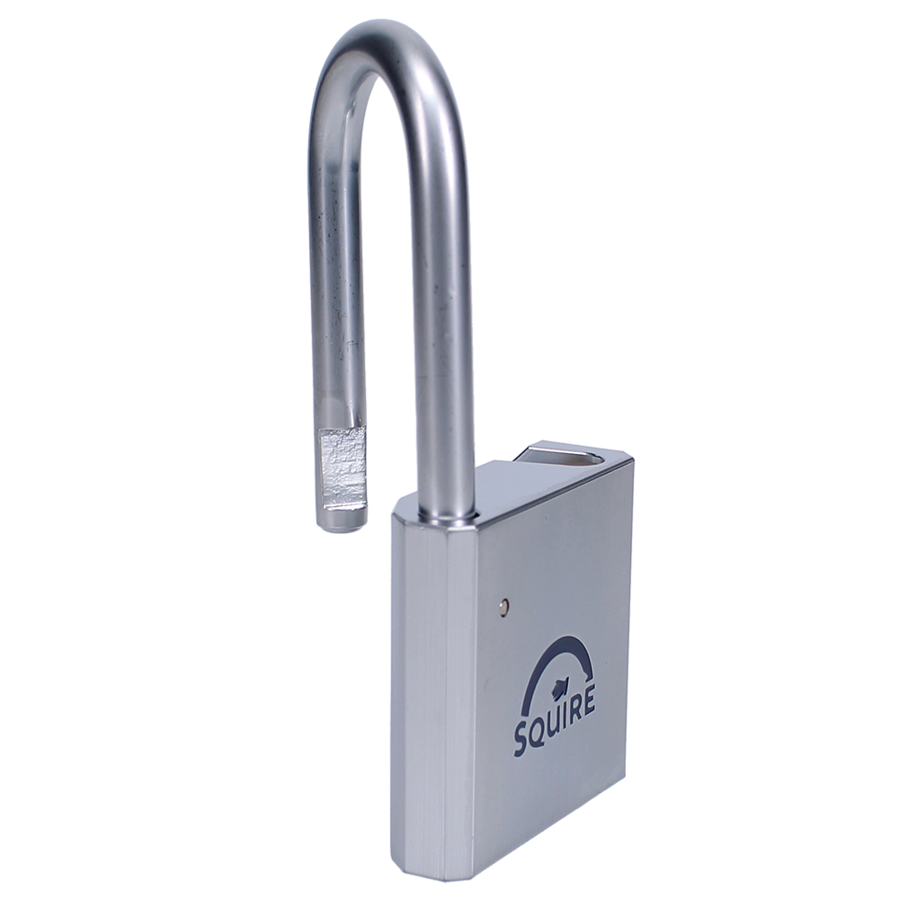 This Squire HEB50 open shackle padlock is supplied body only and will accept a 40mm (30/10) half euro cylinder. The body is solid brass with a satin chrome finish and it has a hardened boron steel 8mm diameter shackle.