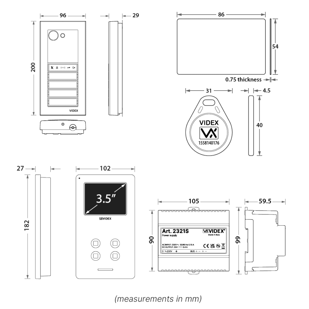 VIDEX ERA23VB Series Entry Panel Video Kit With 3.5 Inch Video Monitor(6388) PSU (2321S) & Proximity Card Fobs (955MF) ERAKIT23B6388 Gun Metal Grey ERAKIT23B6388