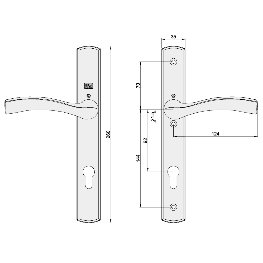 The Winkhaus Palladio quick fit range of door furniture are three hole fixing with 92mm centres. These lever/lever handles are supplied with a spindle suitable for use with UPVC doors 56mm - 60mm thick. They have a manufacturers ten year operational guarantee and are available in a choice of finish.